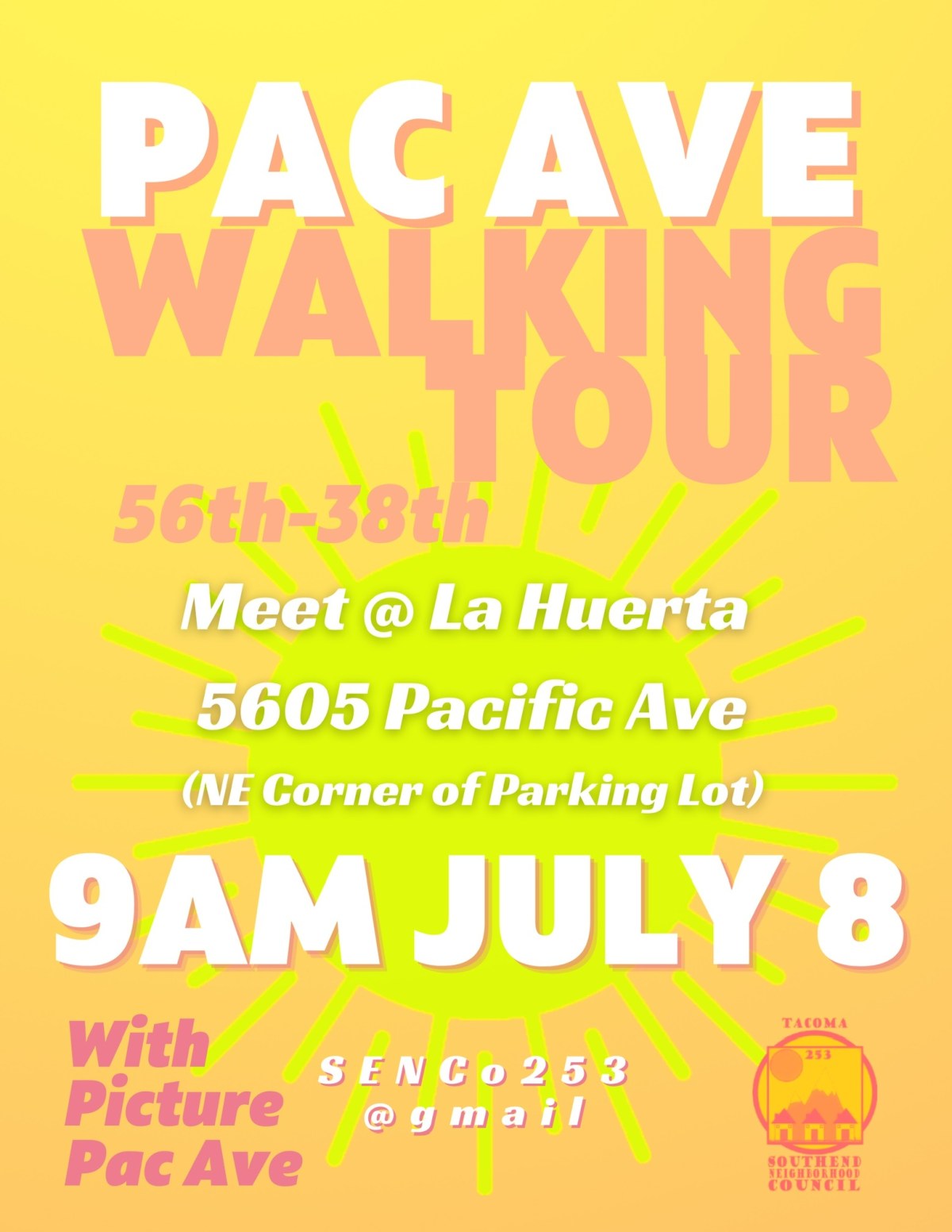 Saturday, July 8th at 9am meet at La Huerta at 5605 Pacific Ave where the walk will begin & end.