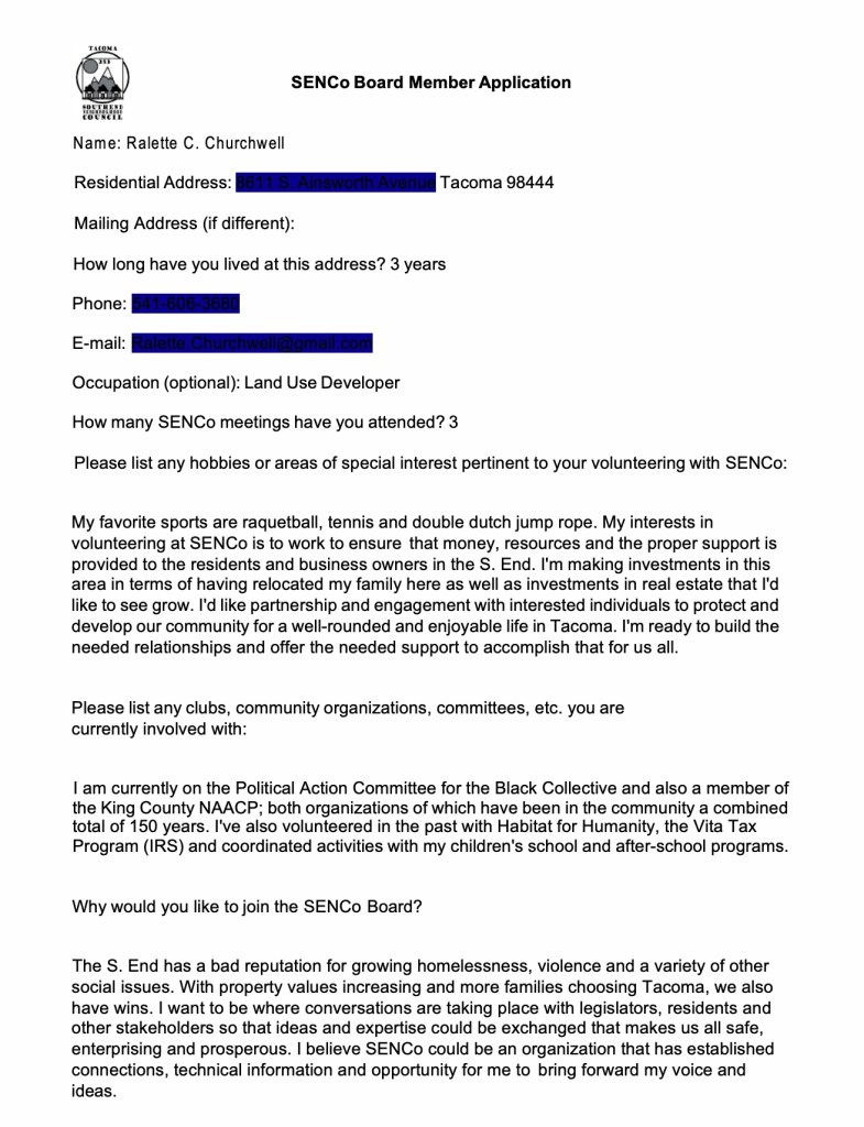 Vote for applicant Ralette Churchwell will take place at the Nov 7 SENCo General Election during the General Meeting at 7pm