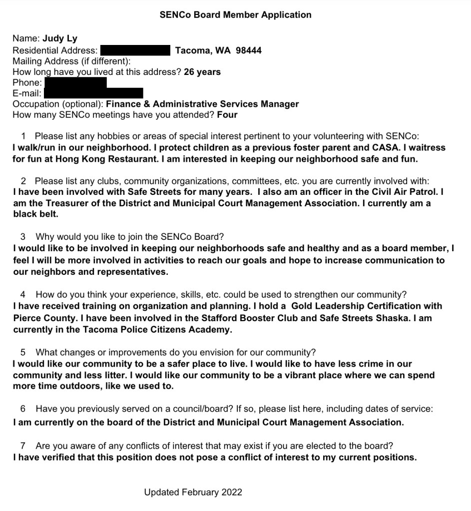 Vote for applicant Judy Ly will take place at the Nov 7 SENCo General Election during the General Meeting at 7pm