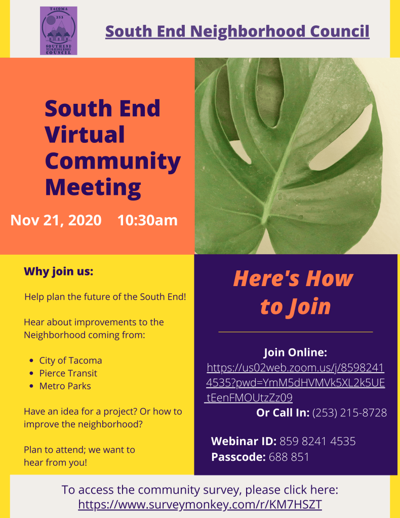 Questions? Email the organizer, our very own District 5 Council Member Chris Beale at: chris.beale@cityoftacoma.org
